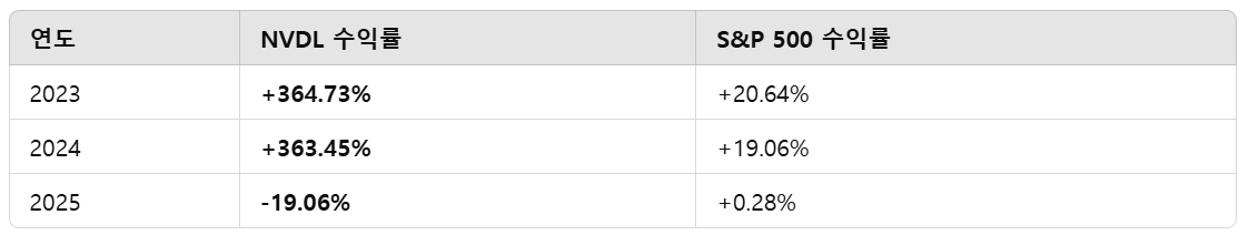 • NVIDIA의 주가와 AI 관련 시장 흐름에 따라 NVDL의 수익률이 크게 변화합니다.