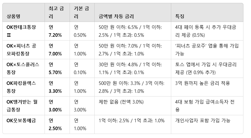 💰 OK저축은행의 다양한 파킹통장 상품을 비교해 보면서 어떤 상품이 가장 유리한지 분석해 보겠습니다! 😊