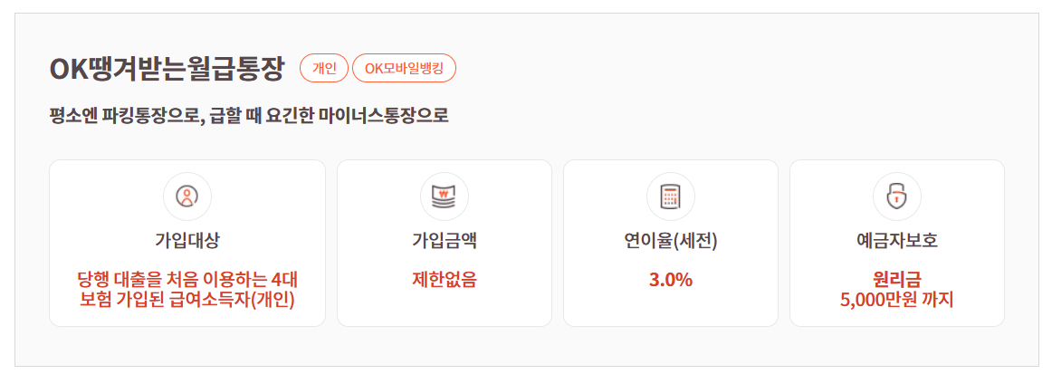 ✅ 월급 수령 직장인 → OK땡겨받는 월급통장 (3.0%)