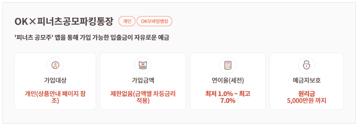 ✅ 공모주 투자 고려 중 → OK×피너츠 공모파킹통장 (7.0%)