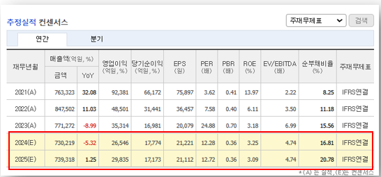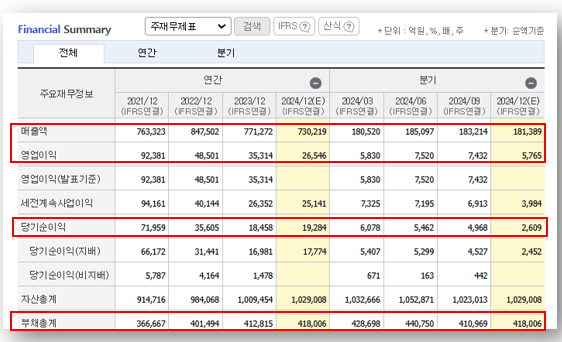 - 2024년 예상 영업이익 2조 6,546억 원 (추가 하락 가능성)
