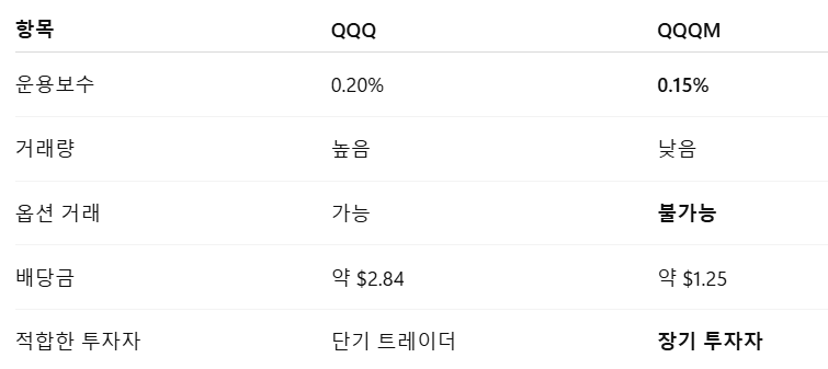 - QQQM과의 차이: 수수료, 옵션 가능 여부