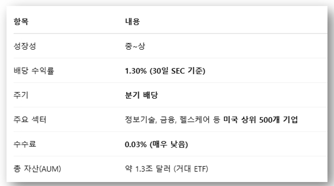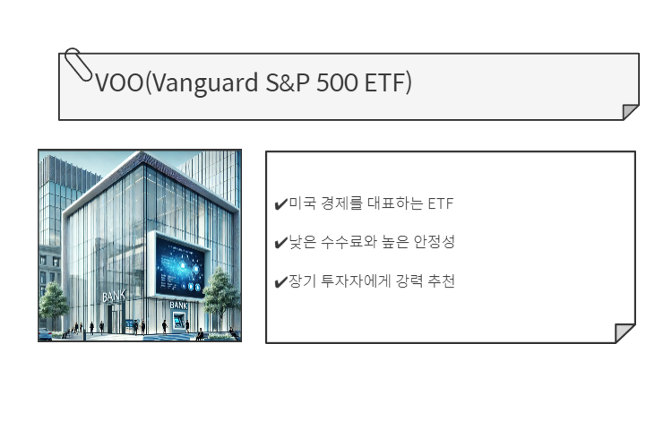 고배당 ETF인 SCHD, 기술 중심 성장형 ETF QQQ, 미국 대표 대형주 지수 추종 ETF인 VOO(S&P500).