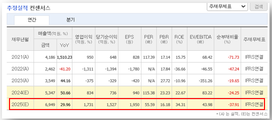 - 매출액: 6,949억 원 (전년 대비 +29.96%)