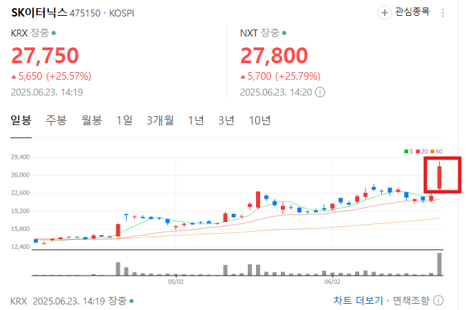 SK이터닉스 주가가 급등세를 이어가며 투자자들의 이목을 집중시키고 있습니다. 2025년 6월 23일 기준, 장중 28,700원까지 오르며 전일 대비 무려 +29.86% 상승했습니다. 이번 포스팅에서는 SK이터닉스의 주가 급등 이유, 중장기 투자 포인트, 목표주가 등을 종합 분석해보겠습니다.