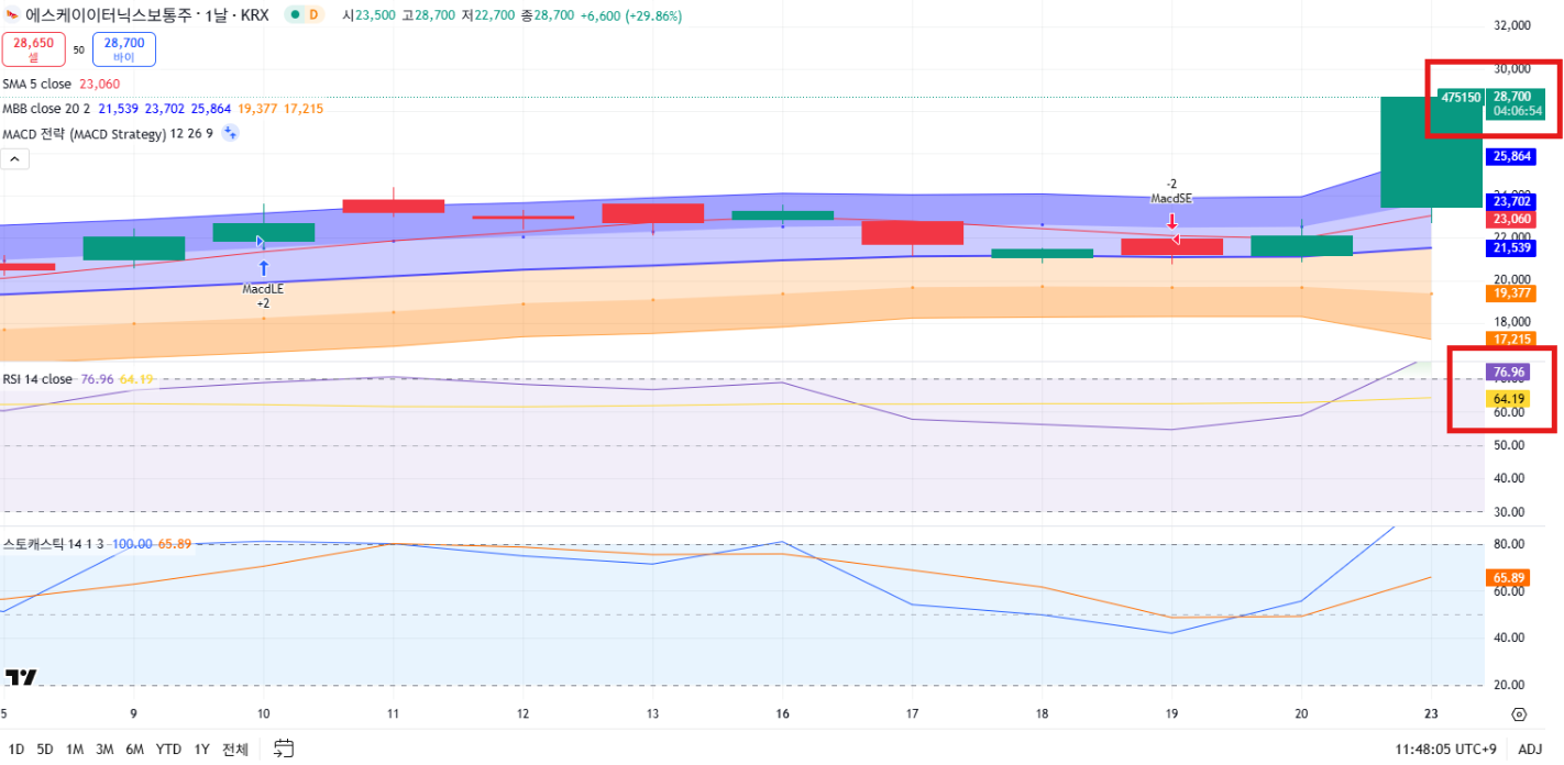 - 스토캐스틱: 100, 88.94 (추세 강세 지속 중)