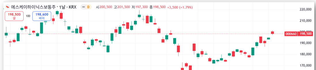 SK하이닉스는 20만 원대 주가 재돌파와 함께 실적 회복 기대감까지 더해진 종목입니다. 특히 AI 반도체와 HBM 시장 선점이 지속된다면 2025년 하반기에는 목표주가인 27만 원도 충분히 가능할 전망입니다.