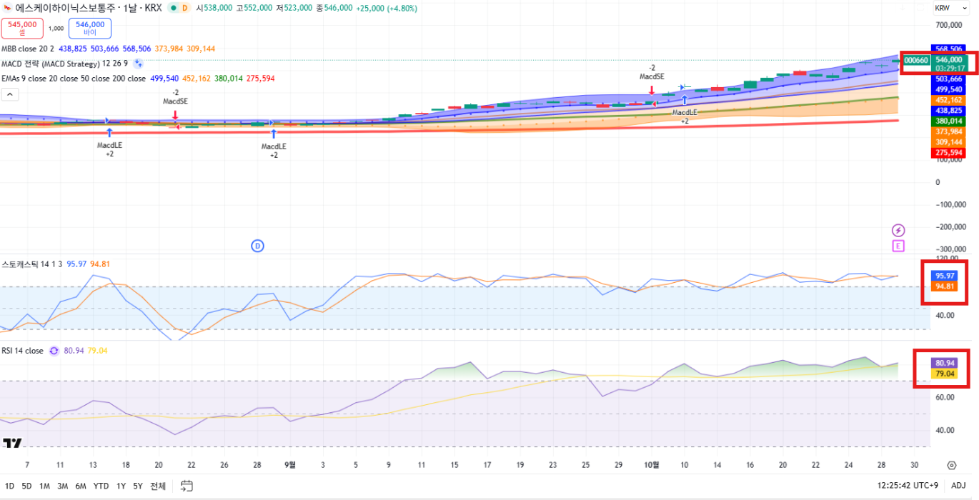 최근 SK하이닉스 주가는 실적 발표와 AI 수요 폭증 기대감으로 단기 급등세를 이어가고 있습니다. 하지만 기술적 지표에서는 과열 신호도 포착되고 있어, 단기 조정 가능성과 중장기 추세 유지 여부를 동시에 점검해야 합니다.