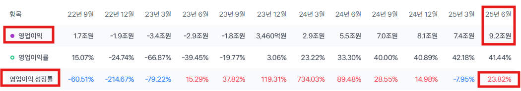 - 영업이익: 9.2조원 (전 분기 대비 +23.82%)