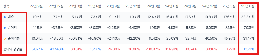 👉 2024년 하반기부터 흑자 전환에 성공하며, 실적이 뚜렷하게 개선되고 있는 흐름을 보입니다.