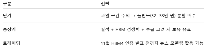- 지금은 분할 접근 또는 눌림목 대기 전략이 더 유효