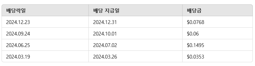 - 2024년 총 배당금: 약 $0.32