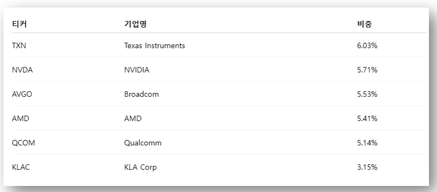 5. SOXL 구성 종목 (상위 6종목 비중)