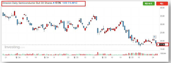 SOXL 주가가 17달러 선까지 떨어졌습니다. 많은 투자자들이 "지금이 저점 매수 기회일까?"라며 고민하고 있는데요, 오늘은 SOXL 종목 분석부터 배당금 내역, 앞으로의 주가 전망까지 꼼꼼히 알려드릴테니 참고바랍니다.