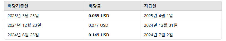 SOXL은 분기 배당을 실시하고 있으며, 최근 배당금 내역은 다음과 같습니다.