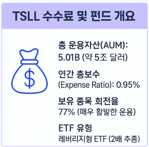 TSLL은 테슬라 주가의 일간 변동성을 2배 추종하는 구조로 설계되어 있어, 수익과 손실의 폭이 큽니다. 장기 보유보다는 단기 트레이딩 또는 특정 이벤트(예: 테슬라 실적 발표 등)에 맞춰 접근하는 것이 적합합니다.